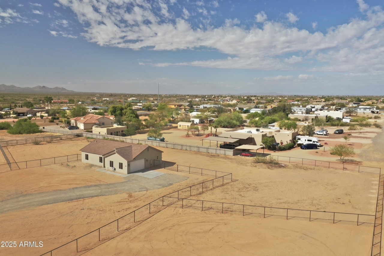 Welcome to your own private slice of Arizona living! This beautifully remodeled home sits on just over an acre with wide-open mountain views and trail access right from the property-perfect for anyone who craves space, privacy, and that peaceful desert lifestyle. Inside, you'll love the bright, open great room with vaulted ceilings, a stunning 5x7 quartz waterfall island, and custom-made cabinetry throughout the completely remodeled 2022 kitchen and bathrooms. The split floorplan gives the primary suite its own quiet retreat with a walk-in closet and warm natural light. Now for the showstopper... the 30x40 insulated shop. This is the dream setup: custom wrought iron gates leading to the shop, a water apron, plumbing for water, an 8' garage door, custom shelving, and a 10,000 lb lift that can convey with the right offer. The property also features 24' gates on both sides, making access incredibly convenient. The property is fully fenced and beautifully landscaped. The backyard offers a separate play area with turf and pavers, plus a cozy covered patio. The remaining yard is finished with clean, low-maintenance quarter minus, ideal for anyone who loves space without all the upkeep. Desert landscaping highlights the front and side yards, giving the home a warm, inviting feel. Additional perks include an attached 2-car garage with 220 power, a new 50-gallon Marathon water heater with a lifetime warranty, and a laundry oxygenatora system that uses oxygenated water to clean clothes more effectively while reducing detergent use. This home blends comfort, modern upgrades, and that wide-open Arizona lifestyle. If you've been waiting for the perfect property with room to breathe, space to play, and a shop most people only dream of - this is the one!